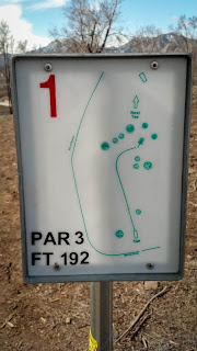 You'll note that this is not a particularly accurate map, but I hope it communicates the general idea that this disc golf course is a lot of fun. The first 9 holes meander amusingly around a hill. The back 9 asks the question, "Can you throw straight?" You'll note that I cannot. (I'd never played disc golf on a course before and there was a 20 mph wind most of the day.)